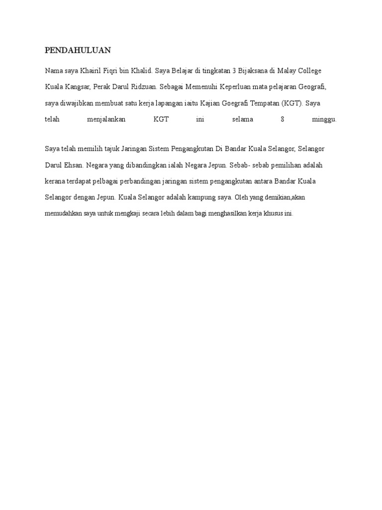 KAWASAN KAJIAN 4 5. Kerja Lapangan Geografi Tingkatan 2 20 PENDAHULUAN Saya telah menjalankan kajian tentang pengangkutan awam di Taman Bukit Mewah Kajang Selangor. Kerja lapangan geografi tajuk.