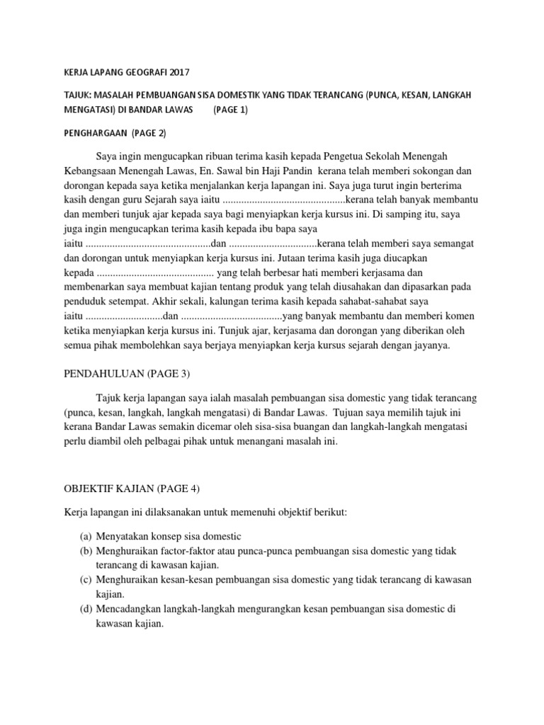 KERJA LAPANGAN GEOGRAFI SISA DOMESTIK Nama Pelajar. Baca versi flipbook dari KERJA LAPANGAN GEOGRAFI TINGKATAN 1 2021. Tips panduan jawapan contoh kerja kursus kajian lapangan tugasan pt3 geografi 2020 kegiatan ekonomi malaysia.